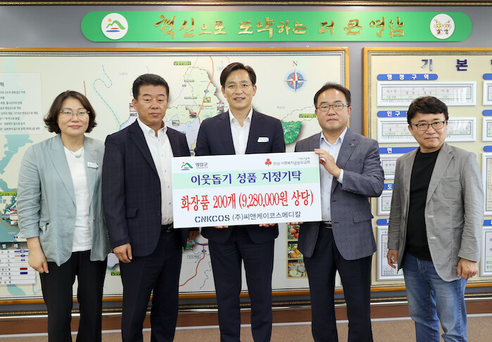 ㈜씨엔케이코스메디칼은 인천광역시 고잔동에 위치한 화장품 전문 제조회사로 2021년 인천시 유망중소기업으로 선정됐으며, 영암군 향우회와 인연으로 이웃돕기 성품을 기탁하게 됐다.