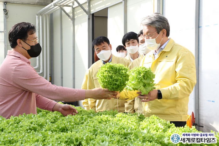 | ▲유진섭 정읍시장이 스마트 팜 현장을 찾았다. ⓒ정읍시 |