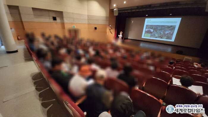 PT 진행 중 한 참가자가 손을 들어 “글자가 보이지 않는다”고 말하자 진행자는 “나중에 행정복지센터에서 다시 설명해 줄 것”이라고 답했다.