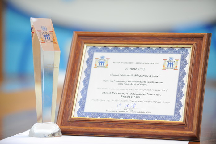 | ▲ 서울시 상수도사업본부가 수상한 UN공공행정대상. |