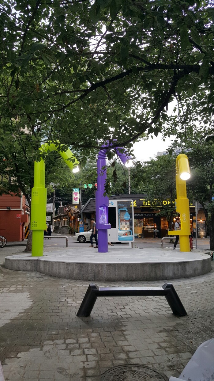 ▲ 신촌 명물거리에 공연이 가능한 조명과 무대, 스피커 시설을 갖 춘 스토로우 모형의 아리수 음수대. |
