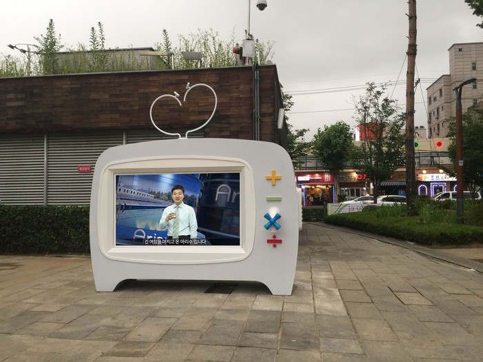 | ▲ 은평구 평화공원에 설치한 TV모양의 아리수 음수대 모습. |
