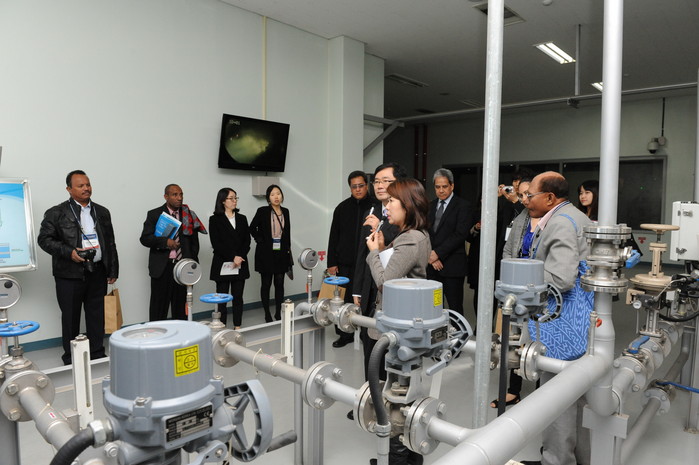 | ▲ 영등포아리수정수센터 관계자가 벤치마킹 온 외국 상수도 관계자들에게 오존발생 및 분배시설에 대해 설명하고 있다.<사진제공=서울시 상수도사업본부> |