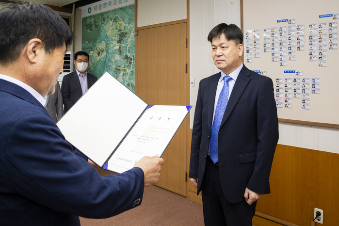 | ▲ 20일 계양구 박형우 청장이 이승학 부구청장에게 임명장을 전달하고 있다. (사진=계양구) |