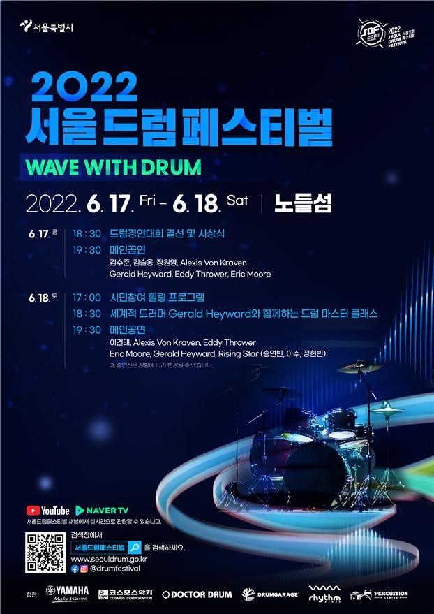 관객 온라인 투표는 결선이 진행되는 17일 오후 6시 30분부터 서울드럼페스티벌 유튜브와 네이버TV ‘문화로 토닥토닥’ 채널 생중계를 통해 참여 가능하다.