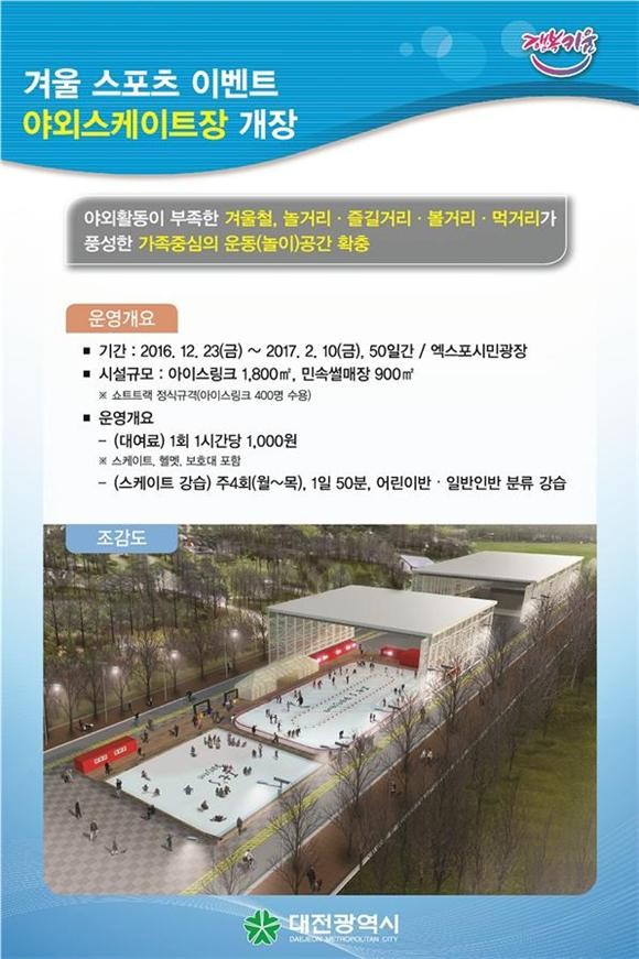 | ▲ 대전시가 23일부터 운영하는 야외스케이트장과 민속썰매장 알림 포스터.<사진제공=대전시청> |