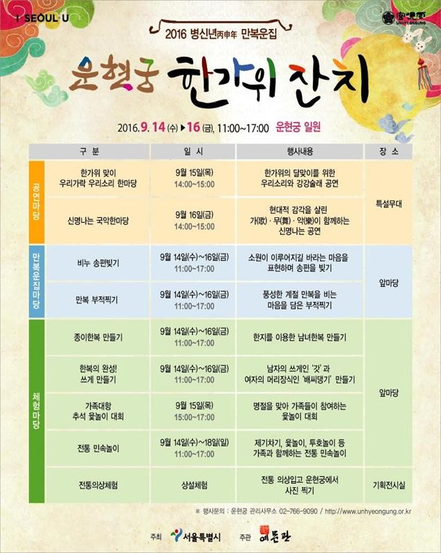 | ▲ 운현궁 한가위 잔치 행사 일정표.<자료제공=서울시청> |