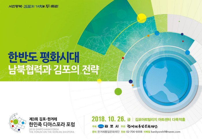 [세계로컬타임즈 장관섭 기자] 김포시는 한민족 디아스포라 포럼은 김포의 평화관련 대표행사로 720만 재외 한인동포들을 보듬고 남북 평화협력의 방안을 찾아가는 학술포럼인 ‘제3회 한민족 디아스포라 포럼’을 개최한다.