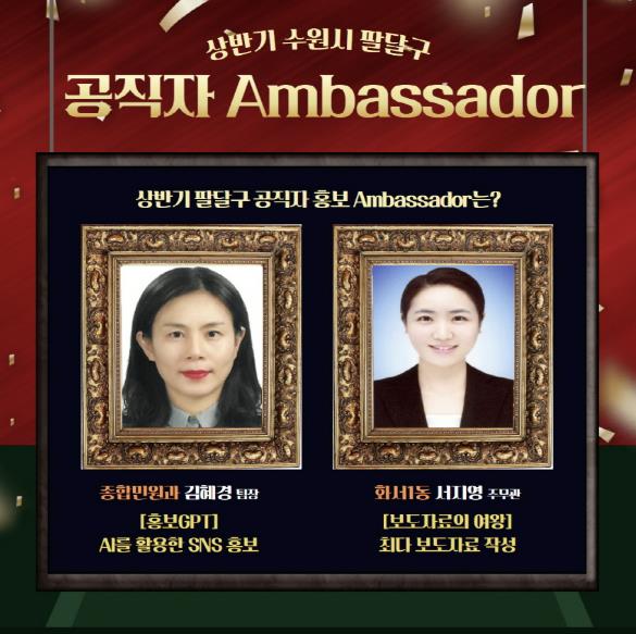 이상균 팔달구청장은 “‘팔달구 공직자 Ambassador’로 직원 누구나 시‧구정 홍보에 주체가 될 수 있다. 선정된 상반기 홍보 우수 직원들을 귀감 삼아 하반기 공직자 Ambassador를 목표로 적극적으로 홍보하여 더 소통하는 팔달구를 만들어 주시기 바란다.”라고 전했다.