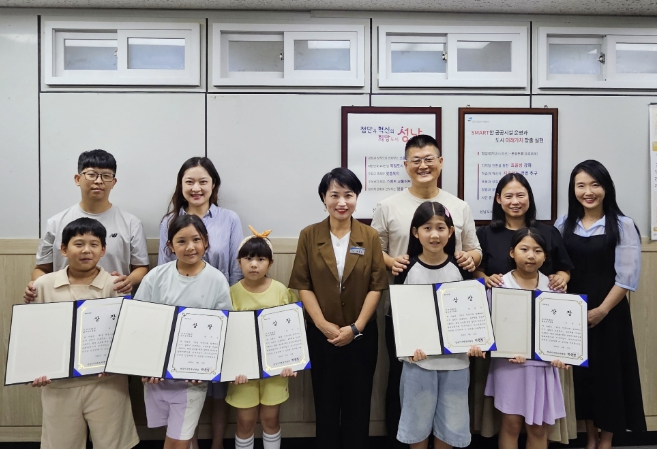 주제별 단계 학습을 통해 아이들의 참여 동기를 높여 총 15명의 미래세대 환경 리더를 양성했으며, 이 가운데 ▲박나은 ▲박새아 ▲박시은 ▲옥선호 ▲옥연수 등 5명의 어린이는 4단계 전 과정을 모두 이수해 수정도서관장상을 수상했다.