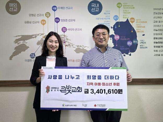 이번 기부는 교회 모든 성도가 참여한 ‘사랑의 저금통’ 활동을 통해 후원금이 마련됐으며, 이는 청소년들이 건강하게 성장할 수 있도록 돕는 데 사용될 예정이다.