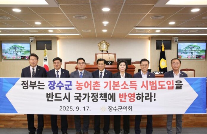 장수군의회는 “군민들의 절박한 염원을 담아 농어촌 기본소득 시범사업 도입을 강력히 요구한다”며, “장수군이 농어촌 기본소득의 중심지로 도약하는 것은 지역 차원을 넘어 대한민국 농업·농촌의 지속가능한 발전을 위한 기반이 될 것”이라고 밝혔다.