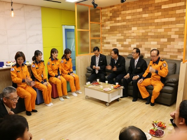 도비 2000만원이 투입된 휴게 공간은 약 50㎡ 규모에 안락한 의자와 테이블, 도서, 지압기, 기타 소품 등을 배치해 각종 현장출동으로 지친 여성소방공무원의 심신 안정을 도모하는 한편 따뜻한 차 한 잔을 나눌 수 있는 소통의 공간으로 꾸몄다.