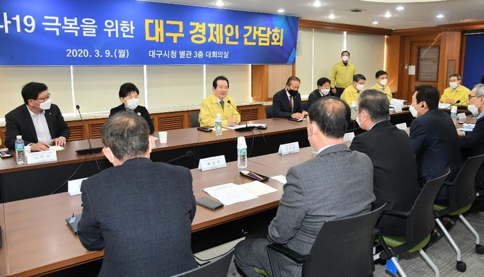 간담회에 참석한 대구 경제인들은 소상공인 지원자금 및 경영안정자금의 만기연장·추가대출 지원과 세금·공과금 감면 · 고용유지 지원절차 간소화 · 중국 원부자재 조달지원 · 전통시장 마케팅 및 소비활성화를 통한 골목상권 활성화 등을 요청했습니다.