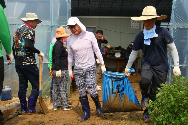 [세계로컬신문 김수진 기자] 충북 영동군 공무원 40명이 최근 172mm의 기록적인 폭우로 큰 피해를 입은 이웃 괴산읍 능촌리의 한 버섯재배 농가를 찾아 복구작업을 벌이며 구슬땀을 흘렸다.