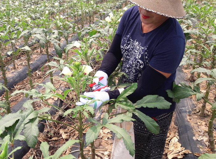 센터에 따르면 면천면 상성리 아삽‧야콘농원(대표 이명옥)은 당진에 처음으로 오크라를 도입해 올해로 6년 째 재배하고 있는데 현재 본격적인 수확기를 맞아 폭염 속 더위를 잊은 채 작업에 한창이다.