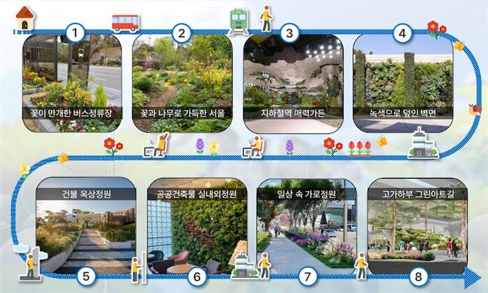 도심을 거닐며 만나볼 수 있는 대로변, 건물 옥상, 고가도로 등 279개소는 사계절 꽃길정원, 가로정원, 옥상정원, 서울아래숲길 등의 이름으로 매력정원으로 탈바꿈해 출퇴근 길 힐링의 시간을 선사한다.