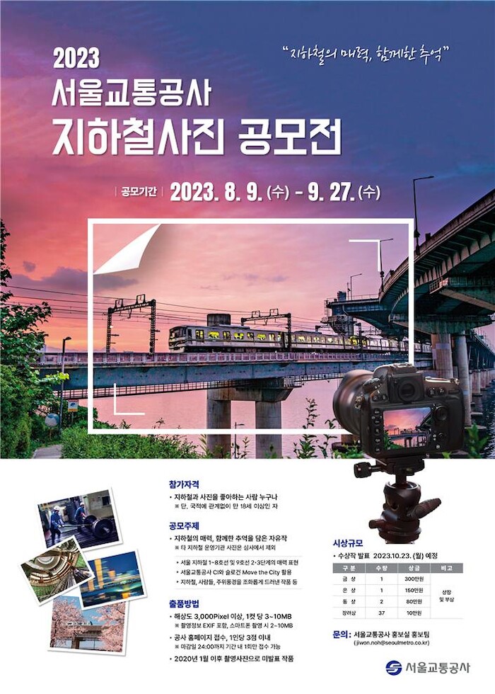 [세계로컬타임즈 이효진 기자] 서울교통공사(이하 ‘공사’)가 서울 지하철의 다양한 모습을 담은 ‘2023 지하철 사진 공모전’을 개최한다.