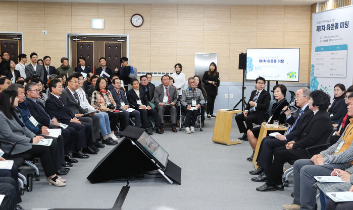 | ▲당진시에서 제1차 타운홀 미팅이 열려 패널 등이 대화를 나누고 있다. (사진=당진시 제공) |