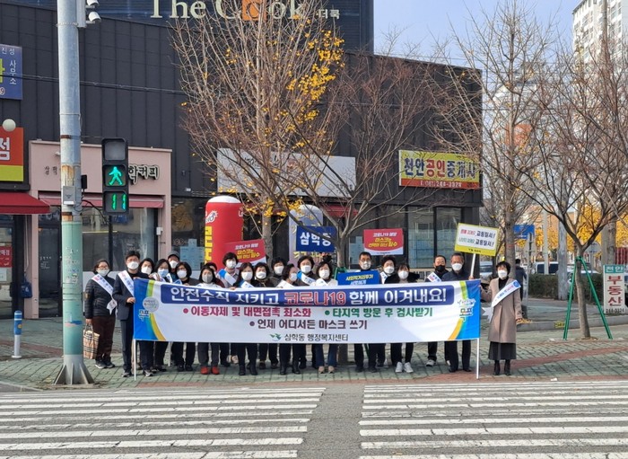 삼학동은 지난 25일 자유시장 사거리, 삼학초등학교 인근 등 다중이용시설을 중심으로 2021년 안전문화운동 캠페인을 실시했다.