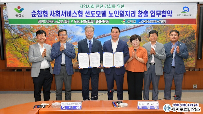 [세계로컬타임즈 조주연 기자] 전북 순창군이 안전분야 100개의 노인일자리 추가 확보를 위해 한국노인인력개발원과 순창형 사회서비스형 선도모델 사업 협약을 체결했다.