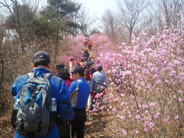 | ▲ 부여군 옥산면 옥녀봉에서 4월1일 진달래꽃 십리길 축제가 열린다. 사진은 지난해 축제에 참석한 시민들이 진달래꽃길을 즐기는 모습.<사진제공=부여군청> |