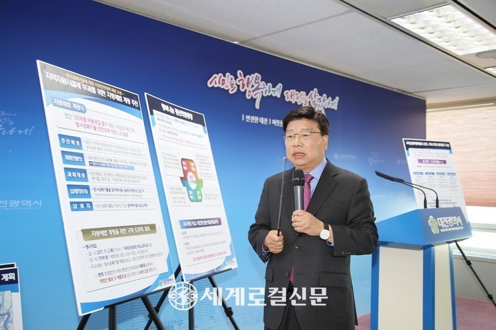 [세계로컬신문 오영균 기자] 권선택 대전시장이 지역에서 거론되고 있는 대전 상징탑 조성에 대해 시민참여형의 민간 주도로 이뤄져야 한다고 밝혔다.