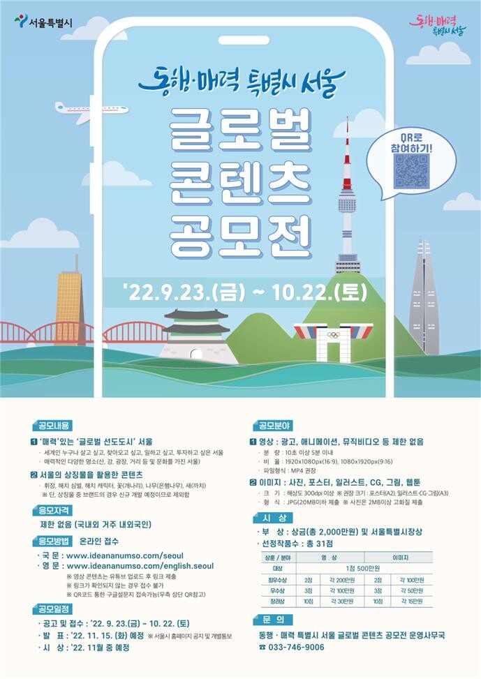 서울시는 ‘동행·매력 특별시 서울’ 글로벌 콘텐츠 공모전을 23일부터10월22일까지 개최한다.