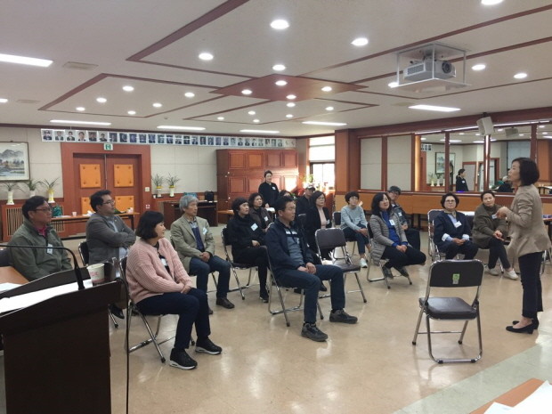 | ▲ 가평군 청평면사무소 대회의실에서 사회적기업・마을기업・협동조합 등 교육을 받고 있다.<사진제공=가평군청> |