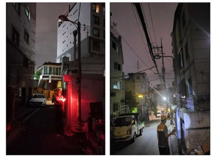 | ▲ 안심마을보안관이 가로등 고장을 확인하고 있다. (사진=서울시) |