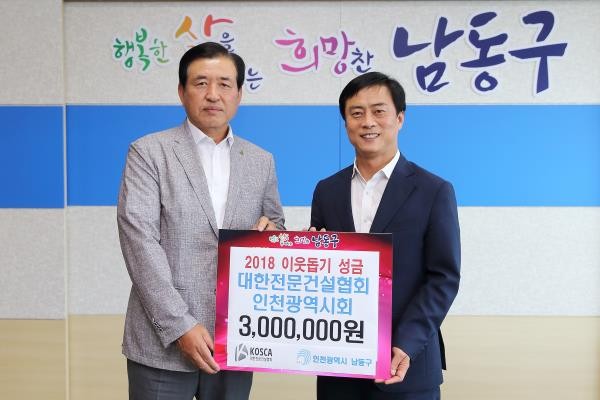 [세계로컬신문 장관섭 기자] 인천 남동구는 대한전문건설협회 인천시회로부터 소외계층 지원을 위한 기부금 300만원을 기탁받았다.