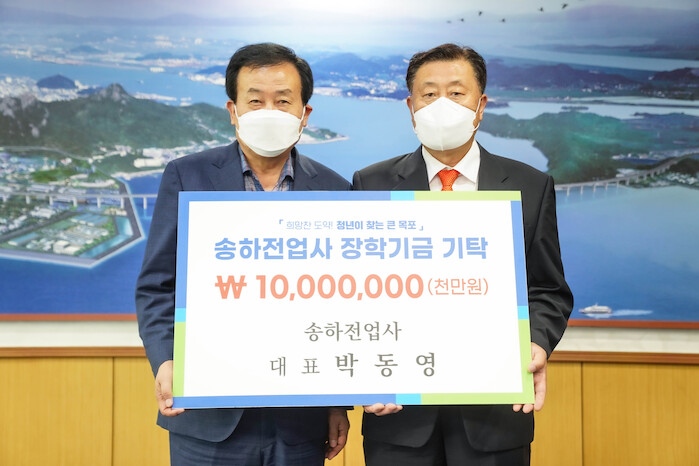 박영동 대표는 “‘희망찬 도약! 청년이 찾는 큰 목포’를 위해 장학금을 기탁하게 됐다. 앞으로도 우수인재 양성 등 지역 사회에 기여할 수 있도록 노력하겠다”고 밝혔다.