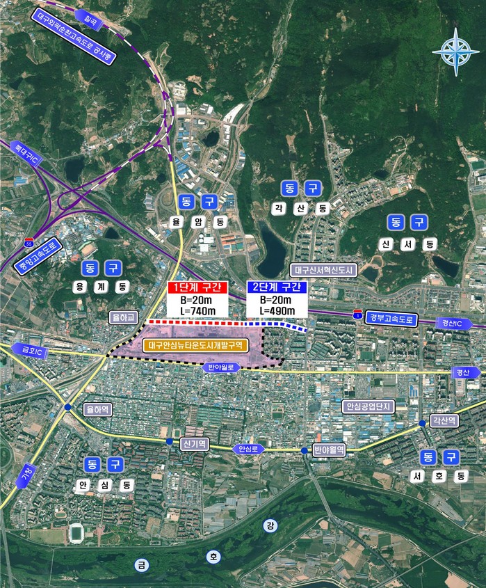 특히 23년 3월경 안심뉴타운로 준공 시 범안로, 반야월로, 안심뉴타운 단지 내·외로의 접근성 향상, 주변 통행 불편 해소, 인근 지역의 개발 촉진 및 정주 여건 개선의 효과가 기대된다.