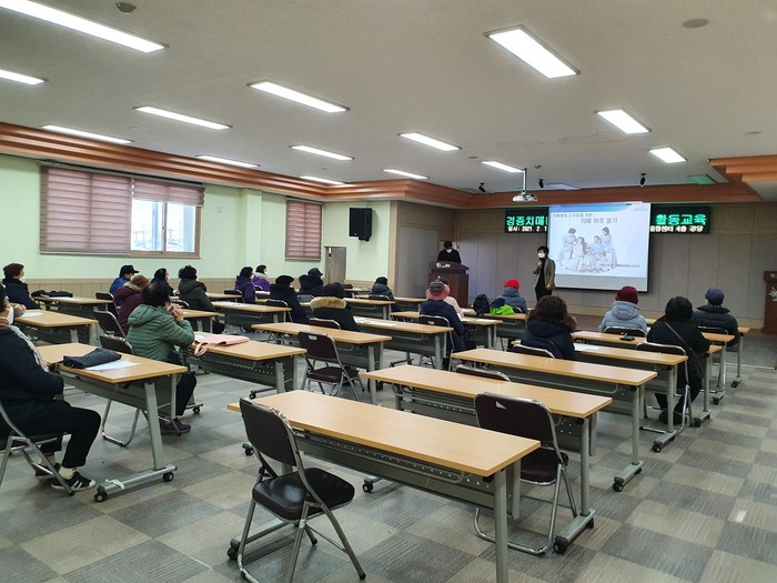 ▲ 부평구 보건소는 치매안심센터, 치매환자 활동도우미 ‘걸음동무’ 지원 사업 시행위해 관계자들에게 교육을 실시 하고있다. (사진=부평구) |