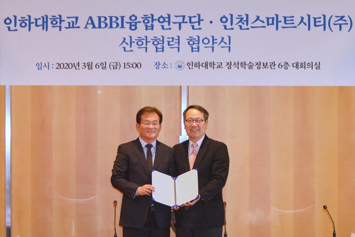 [세계로컬타임즈 장선영 기자] 인하대는 ABBI 융합연구단이 최근 인천스마트시티㈜와 산합협력 협약식을 갖고 인천시를 스마트시티로 조성하는 데 힘을 모으기로 했다.