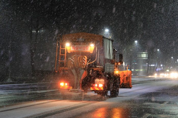 [세계로컬타임즈 최성우 기자] 과천시는 17일 대설특보가 발효되자 24시간 비상근무체제에 돌입해 지역 도로에 대한 신속한 제설 작업을 실시했다. 또한, 취약시설에 대한 안전관리를 실시해 시민의 안전을 확보하고 불편을 최소화하는데 총력을 기울였다.