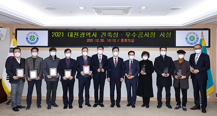 [세계로컬타임즈 민순혜 기자] 허태정 대전시장은 30일 지난 10월 올해의 건축상 및 우수공사장으로 선정된 수상자들에 상장 및 표창장을 수여했다.