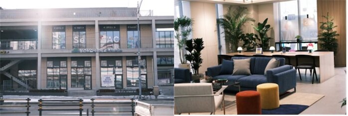 | ▲ 동작 청년취업사관학교 외관(사진 왼쪽)과 커뮤니티 라운지 (사진=서울시) |