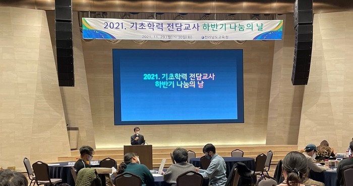 [세계로컬타임즈 김명진 기자] 전라남도교육청이 29일~30일 진도 쏠비치에서 '2021년 기초학력 전담교사 나눔의 날' 행사를 열어 지난 1년간의 운영성과를 공유하고, 2022년 활성화 방안을 제시하는 시간을 가졌다.