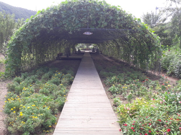 공원 내에는 도깨비박과 조롱박, 색동 호박들이 주렁주렁 매달린 호박터널 2개소와 맨드라미, 천일홍, 메리골드, 구절초 등 40여종의 다양한 꽃들이 계절에 따라 활짝 피는 탐방로가 조성돼 잠시 쉬어가는 휴식공간으로 손색이 없어 여행객들의 발길이 이어지고 있다.