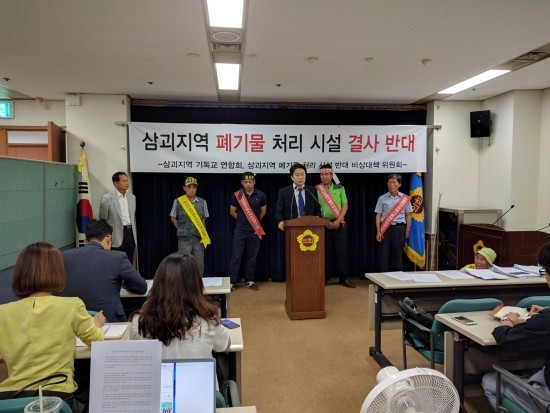 최청환 비상대책부위원장의 사회로 시작된 기자회견에서 이들은 "경기도 31개 시·군 중에서 유독 화성시만 폐기물 처리시설 2곳을 운영 중인데 삼괴지역(운평리, 석포리, 화산리)일대에 공장폐수처리시설 3곳을 더 유치하려고 하고 있다"며 "이는 화성시 서남부권을 폐기물 처리지역으로 만드는 것"이라고 주장했다.