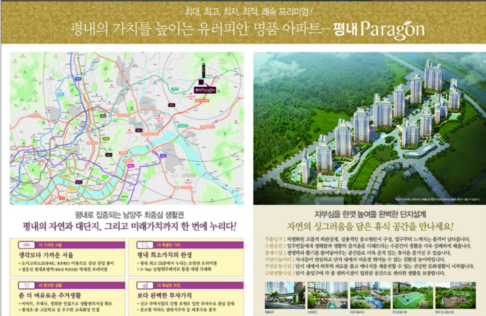 | ▲ ㈜동양건설산업이 경기도 남양주시 평내동 230-3번지 일원에 조성하는 '평내 파라곤' 홍보물. |