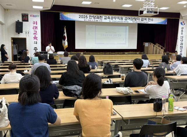 이번 연수는 6월 23일 관내 학교 급여 담당자들을 대상으로 실시하여, 노동관계법 개정에 따른 교육공무직원 복무 변경 사항과 더불어 2025년 경기도교육청 교육공무직원 임금 지급기준 주요 변경사항을 사례 중심으로 구성해 학교 현장에서의 실질적인 활용도를 높이고자 했다.