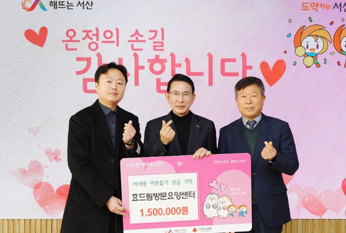 시는 이날 시청 시장실에서 이완섭 서산시장, 이규선 효드림방문요양센터 대표 등이 참석한 가운데 기탁식을 개최했다.