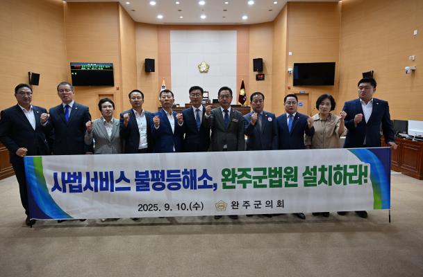 심부건 의원은 제안 설명에서 “완주군은 인구 10만 명을 넘어섰음에도 여전히 법원이 없어, 군민들이 일상과 직결된 소송이나 민원을 해결하기 위해 전주까지 가야 하는 불편을 감수하고 있다”며 “이는 사법 서비스의 불균형이자 명백한 차별”이라고 강조했다.