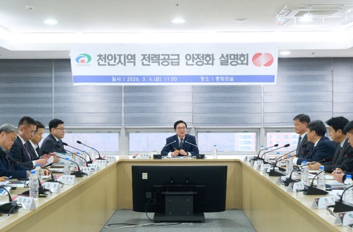 [세계로컬타임즈] 천안시는 6일 시청 중회의실에서 한국전력공사 대전세종충남본부와 함께 ‘천안지역 전력공급 안정화를 위한 설명회’를 개최하고 중장기 전력 인프라 확충 방안을 논의했다.