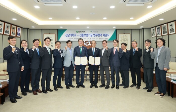 전남대는 9월 22일 대학본부 5층 접견실에서 이근배 총장을 비롯해 조진형 대외협력처장, 나주몽 경영대학장 등 주요 보직자들과 최원목 신용보증기금 이사장 및 관계자들이 참석한 가운데 업무협약 체결식을 가졌다.