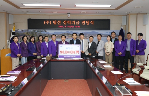 ㈜탑선 임직원은 “신안 지역 학생들이 경제적 어려움 없이 자신의 재능을 마음껏 펼치고 꿈을 키워나갈 수 있도록 작은 보탬이 되길 바란다”라며, “앞으로도 지역사회와 함께 성장하는 파트너로서 다양한 사회공헌 활동을 꾸준히 펼쳐나가겠다”라고 약속했다.