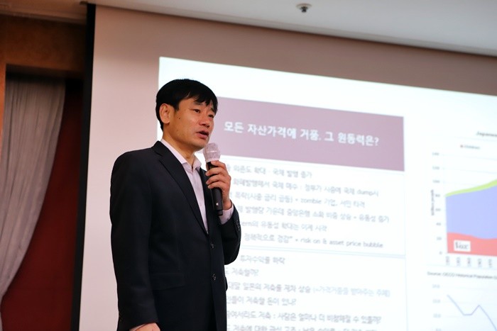 코로나19로 인해 온라인 진행된 이날 강연에서 김 교수는 “현재의 자산가격 거품을 만드는 구조적인 요인은 과잉 저축이고, 이것은 아직 살아 있다”며 “자산가격 거품이 생길수록 투자수익률이 낮아지고 동일한 노후를 보장받기 위해 더 저축해야 하는 악순환이 반복된다”고 말했다.