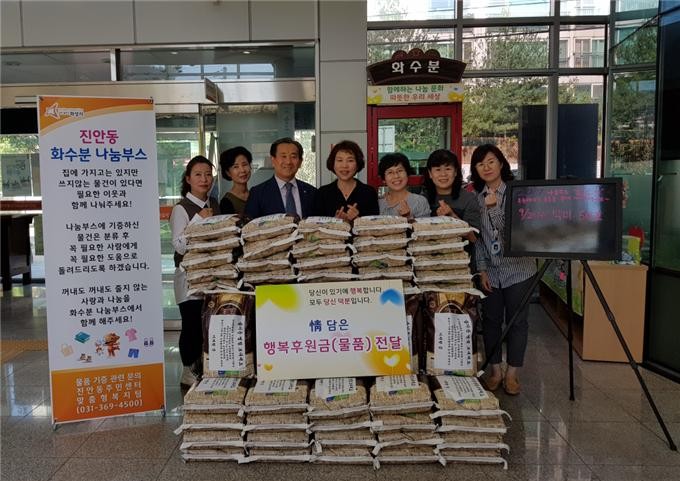 기탁된 쌀은 지역사회보장협의체 위원들의 도움을 받아 진안동 독거노인, 북한이탈주민, 다문화가정에 골고루 전달될 예정이다.